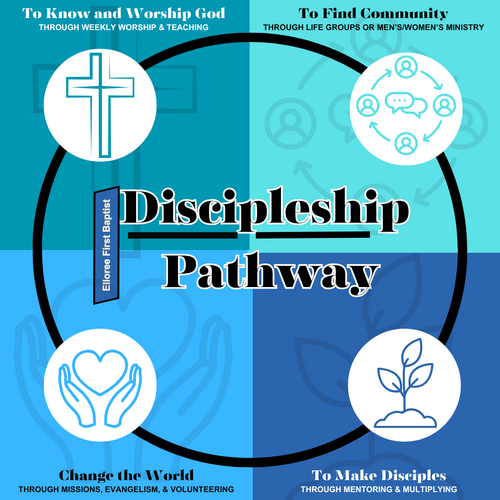 At Elloree First Baptist Church, we are committed to walking alongside one another in this process of discipleship. Whether through worship, Bible study, prayer, service, or fellowship, we believe that each step of the journey helps us grow closer to Jesus and more fully reflect His love to the world.