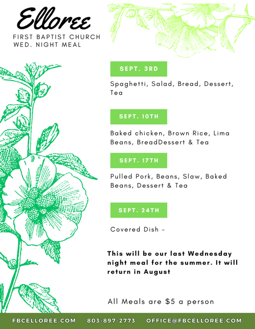 Wednesday Night meals- September